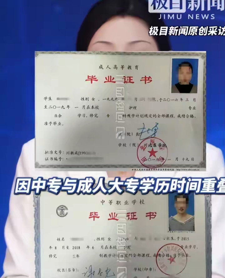 就在所有人都以为她稳了的时候,意外来了。射洪市卫健局突然口头通知税女士,她的考察结论是“不合格”,原因是“学历套读”——2015年她读中专期间,同时报考了成人大专,两个学历的就读时间有重叠。这个结果让税女士彻底懵了:自己的学历都是正规渠道来的,学信网可查,报名时也如实提交了材料,笔试、面试环节的学历审核都过了,怎么到最后一步就不认了?