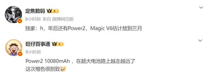 近期有博主披露了荣耀两款新旗舰机型,分别是荣耀Power2和荣耀Magic V6的具体发布时间。