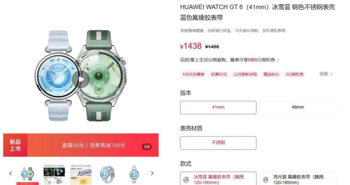 华为WATCH GT 6 41mm 冰雪蓝手表最初与华为nova15系列一同发布,此次特别推出冰蓝配色。根据华为商城信息,该款手表采用淡雅柔和的色调设计,搭配氟橡胶表带,整体风格简洁轻巧,适合女性佩戴,兼顾时尚与舒适。其表带末端的环形柔性表耳设计,方便用户自主调节长度。功能方面,除了原有的向日葵定位,还新增了“神秘感应”功能,进一步拓展了实用场景。