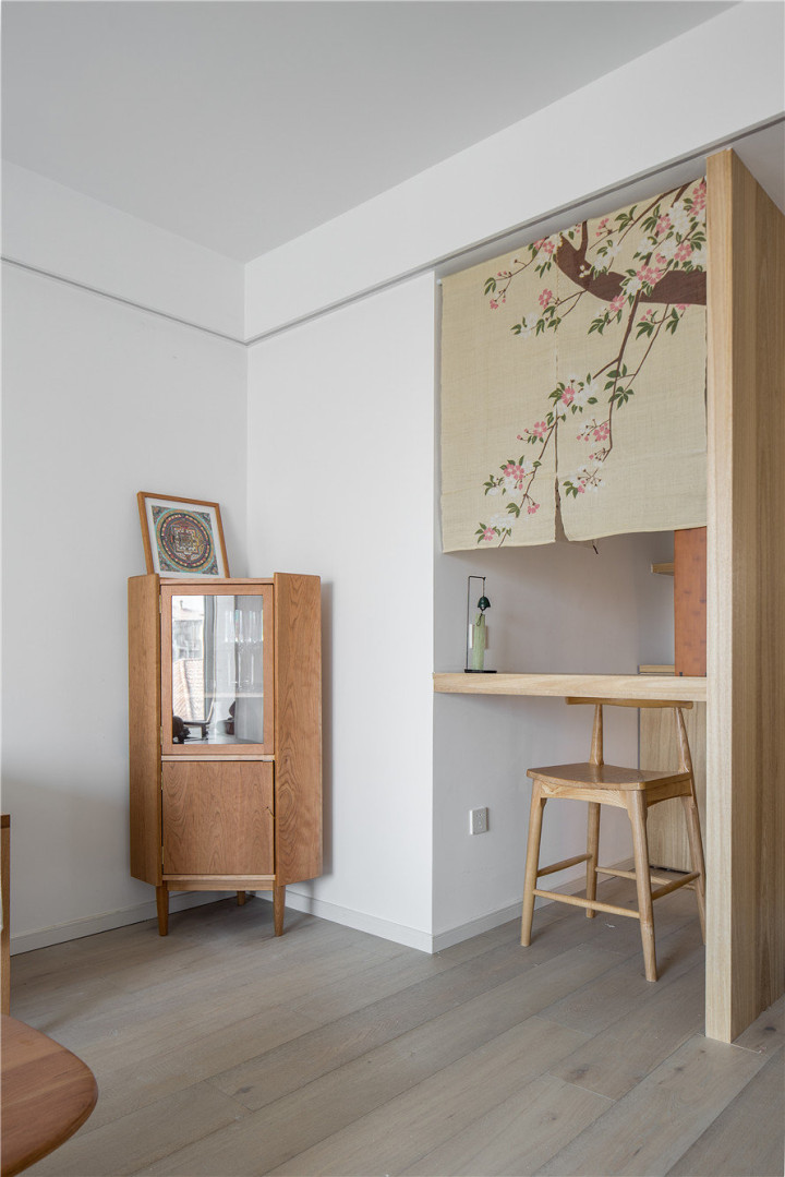 入户进来的空间比较大,利用角落的空间做的一个小小的一人食餐桌,这里也可以是吧台,也可以是办公室等等,主要是采光好,而且还可以充分利用空间。