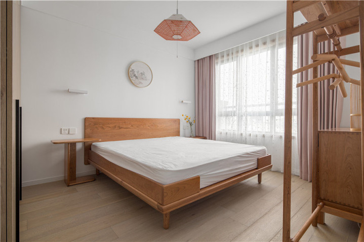 卧室,吊灯的造型独特,好看极了,晚上开着灯,整个温馨感满满,给人一进屋就很放松。