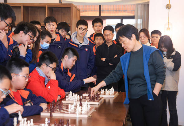 谢军与学生对弈。曾英豪摄