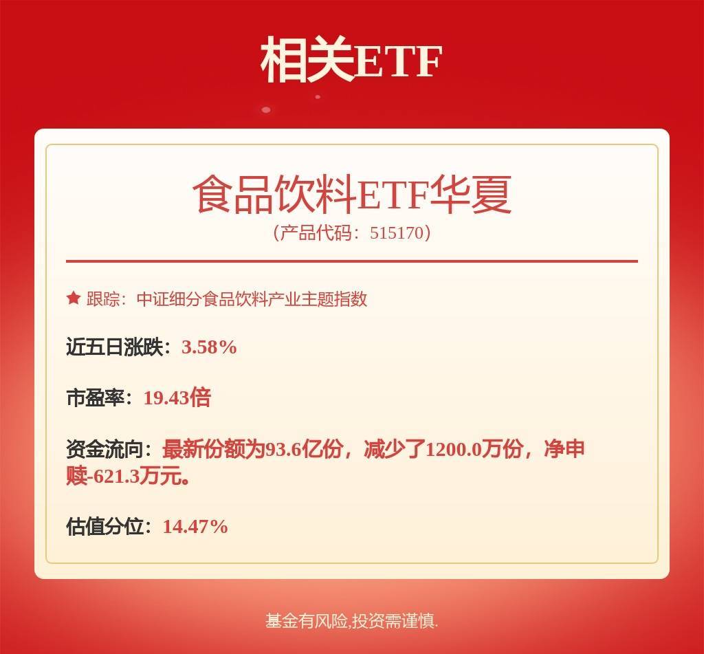 飞天茅台提价提振市场,股价大涨,食品饮料ETF华夏(515170.SH)盘初上扬。