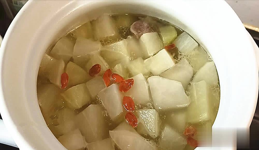(4)萝卜和骨头烧开后,要用中火煮10分钟,这样可以让萝卜的芥子油挥发,芥子油是萝卜汤有苦味的原因之一。