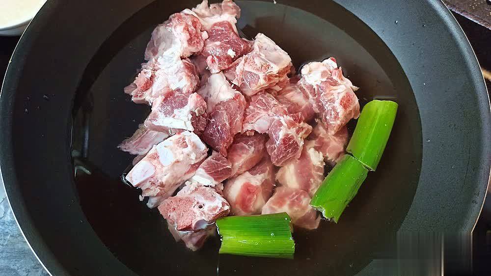 ——制作方法和步骤——【步骤一】:首先我们用水洗净骨头,然后加入适量清水浸泡半个小时,把骨头的血水泡掉。然后把骨头冷水下锅,放入葱段和生姜片,还有10克料酒,大火烧开焯水2分钟。